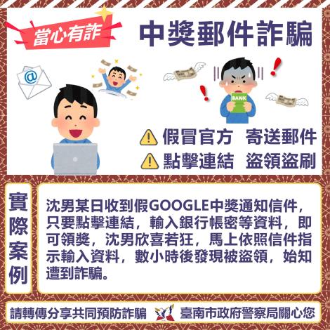 防詐騙宣導 - 中獎郵件 小心有詐