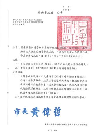 📢台南市政府提醒您,上午7時25分於俄羅斯堪察加半島東部外海發生規模8.7的地震,經初步研判,該地震所引發海嘯預計約於今日13時18分開始影響台灣,故氣象署發布海嘯警訊,提醒沿海民眾提高警覺嚴加防範。