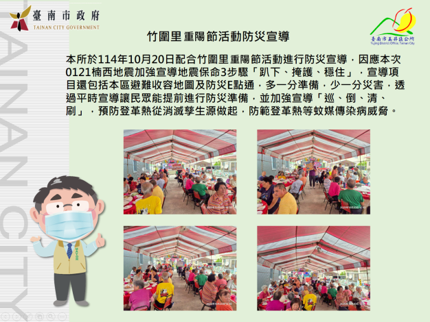 114年10月20日重陽里中秋節活動防災宣導短網址:https://p.tainan.gov.tw/RWJ2X