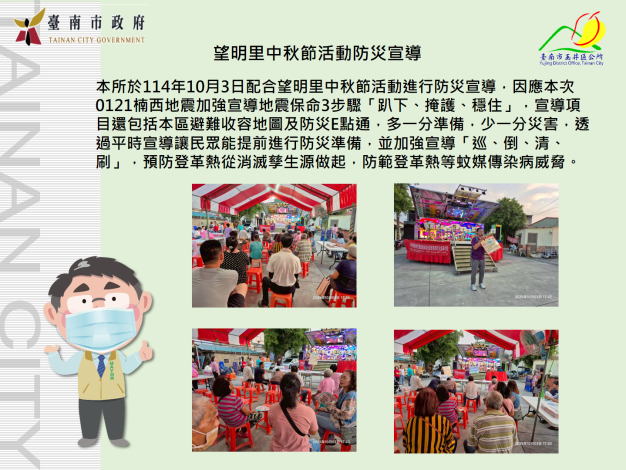 114年10月3日望明里中秋節活動防災宣導短網址:https://p.tainan.gov.tw/UPMvw1